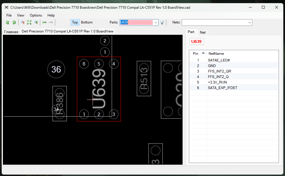 UPDATE #1: I've started buying the necessary parts for the refurbishment/upgrade project. I'll be purchasing most of the parts from China, from sites like Taobao, Xianyu, etc. The first parts I bought were: • 240W GaN AC Adapter (DP/N 0YR68) • NVIDIA Heatsink + Fans (DP/N 0YJNJK) • Memory RAM Cover (DP/N AM1DJ000300) As soon as the parts arrived, I installed the heatsink + fans, put in some RAM sticks and an SSD that I already had, and tried to turn the laptop on. To my surprise, it booted, but I immediately noticed that the screen was defective. Aside from the screen, everything works perfectly: speakers, touchpad, USB ports, fingerprint reader, RAM slots, etc. However, when I took the motherboard out to clean it, I had an unpleasant surprise: a component was knocked off, and even worse, apparently the pads were also ripped off: Taking a look at the boardview, this is what I got: This is where I ask you guys for help, does anyone know exactly what this component does? I tested the motherboard's SATA port and it's working perfectly, full speed. I don't have the necessary skills, but I'm thinking of trying to repair it someday. Anyway, I bought a Dell Precision 7720 motherboard with Xeon E3-1535M v6 (I had originally ordered a motherboard with Xeon E3-1575M v5 because of its 128MB L4 cache, but the seller told me it was out of stock, so they offered me the 1535M v6) on Aliexpress and I'm waiting for it to arrive. Just out of curiosity, before I installed the heatsink, I took the opportunity to install a Clevo GTX 670MX with faulty VRAM chips that I had lying around to see if the Precision would recognize it — and yes, it did, and I was able to install the drivers normally on Windows 10. Here are the pictures: