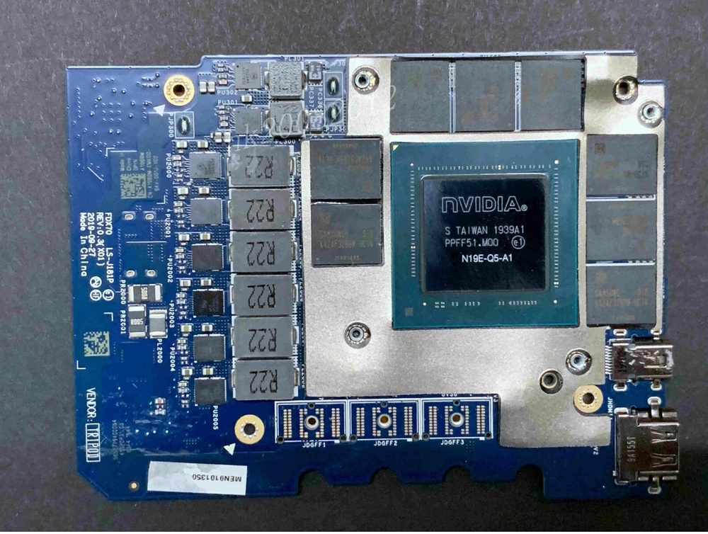 In short, A little bit of the bottom of the palm rest (the bottom part of it which faces up when you stare at the bare GPU, would have to get trimmed to make room for the mosfets/PD of the non-maxQ version. However the non-maxq version is the same length as the p5000 that was supposed to fit the 7540/50, as far as I can tell it's just longer between the two of them. the Width is the same and only one screw mount (related to screwing it to the palmrest) is different, other than that, the palmrest + heatsink modification (flatten it out since the "dip" for the mosfets will be in the wrong place, and then either adding a shim/small bit of aluminum to connect the mosfets to the 7550 heatsink), is all that is needed, and since they both share the same BIOS there shouldn't be a whitelist conflict.