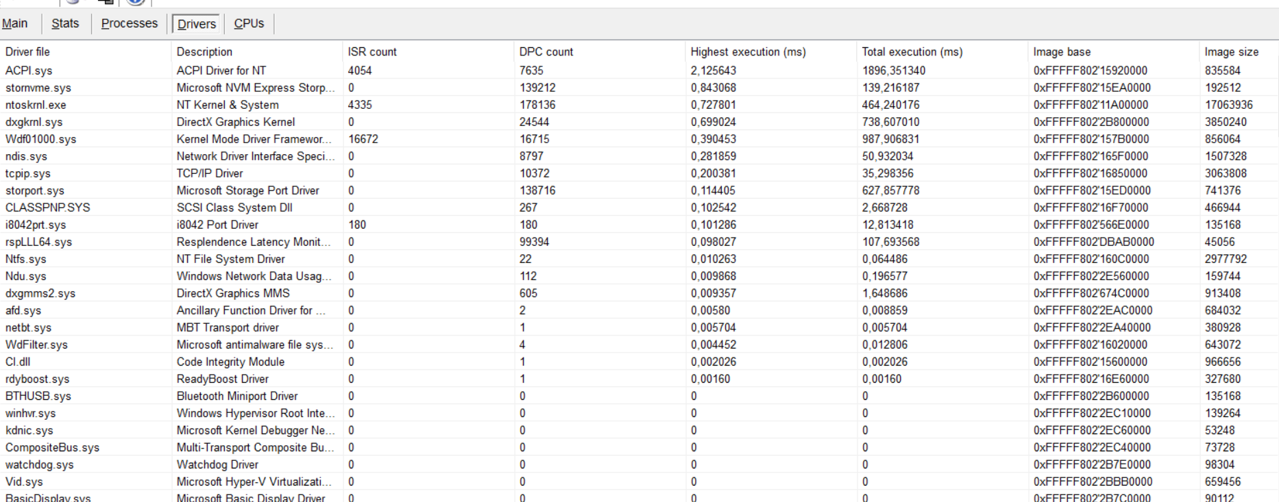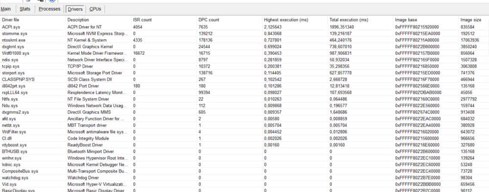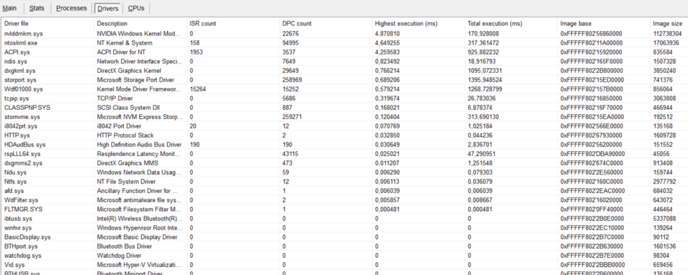 Run LatencyMon. Go to the Drivers tab. Sort it by "highest execution". After you experience one of these stutters, see which one is at the top of the list. (All drivers should finish their work in less than 1ms, so ideally you wouldn't see anything over 1ms. However, anything over a low single digit milliseconds is especially bad and can lead to audio and system stutters.) Does anyone have one of these systems who is not experiencing problems with it? This sounds even worse than what I was experiencing with the Precision 7770. (Combined issues from Dell, Intel, NVIDIA, and Microsoft on that system is what forced me to rethink what ecosystem I am even using...)