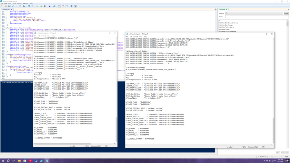 older script dont delete newer APOs drivers fine, and when reinstalling cause failure on nahimic working. i am seeing some registry differences, because driver is correctly deleted (at left, older APO driver, on the right newer one)- 282 replies