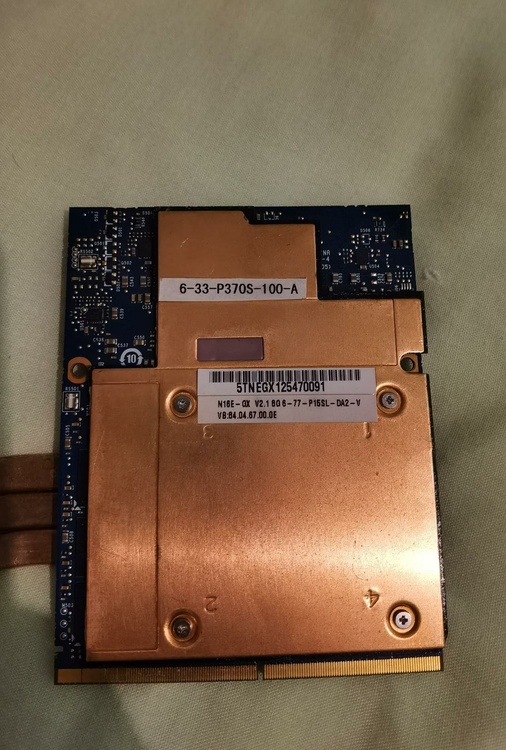 Hi everyone, I recently bought a 980m graphics card for my M17xR4 as my old 970m developed problems. I fitted it to the heatsink and it seemed to fit ok, but on starting the laptop I get 8 beeps. Is this simply the wrong graphics card for the laptop or is likely another issue? The card doesn't seem to have the usual x-shaped plate on the back like my last one and instead has a copper backplate (image url inserted below). https://imgur.com/a/lh7JkFS Thanks in advance