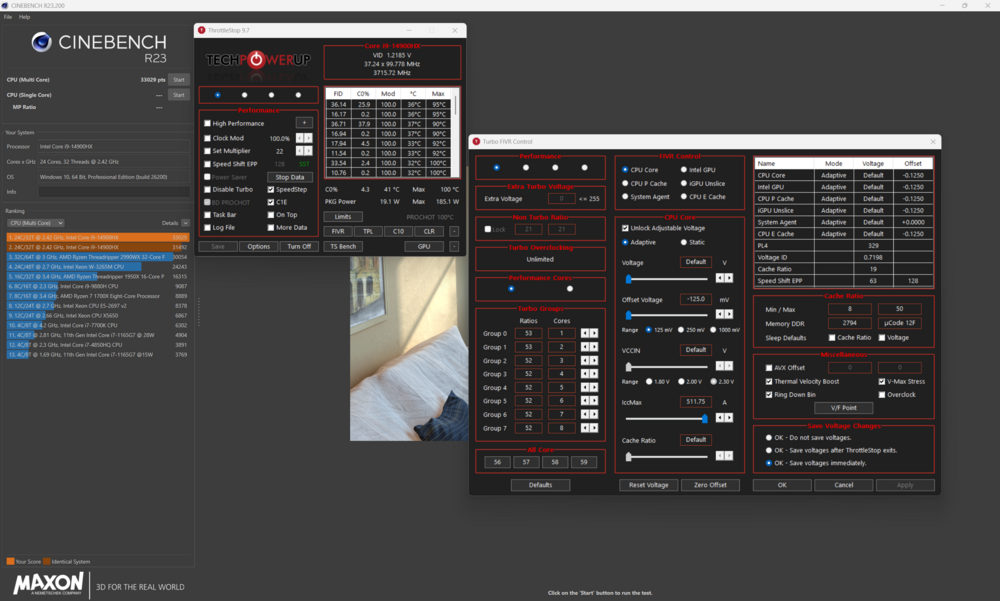 throttle stop does work now and it performed very well in my initial try by lowering the volt -50mv only. that increased my score 1560 points in cinabench 23 you can try and follow this post for more specific information on the 14900hx, this post is about the 13980hx but it is almost the same as the 14900hx https://www.techpowerup.com/forums/threads/i9-13890hx-undervolting-suggestions.321679/- 20 replies