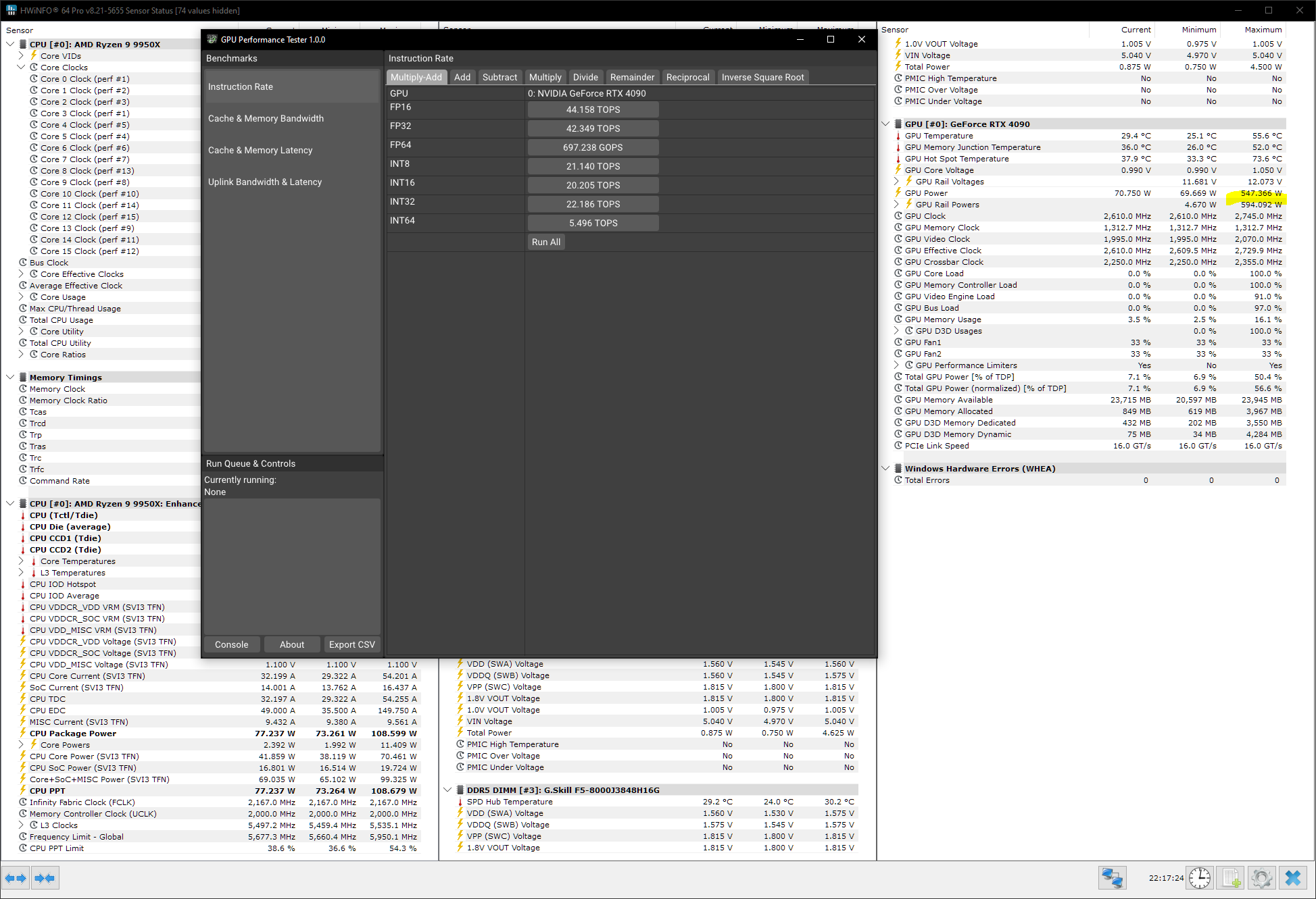 Mr. Fox Posted February 9 Author Share Posted February 9 Interesting. Really pushed the 4090 watts. https://nemez.net/projects/gpuperftests/ It is showing 50% of TDP because I am using a 1000W vBIOS. 1 WRAITH // X870E Apex | 9950X | 4090 Suprim | 48GB DDR5-8000 | GF3 1650W | Triple 360 Loop | Hailea HC-500A || O11D XL EVO (T-Rex) BANSHEE // X870E-E Strix | EPYC 4585PX | 5090 Solid OC | 32GB DDR5-8000 | Edge 1300W | Dual 360 Loop || O11D XL EVO (Rhinoceros) MEH!! // Precision 7720 | BGA CPU Filth | MXM Quadro P5000 16GB | 32GB DDR4 | 4K IPS Display | $500 Turdbook (Sea Turtle) Mr. Fox YouTube Channel | Mr. Fox @ HWBOT The average response time for a 911 call is 10 minutes. The response time of a .357 is 1400 feet per second. Link to comment Share on other sites More sharing options...